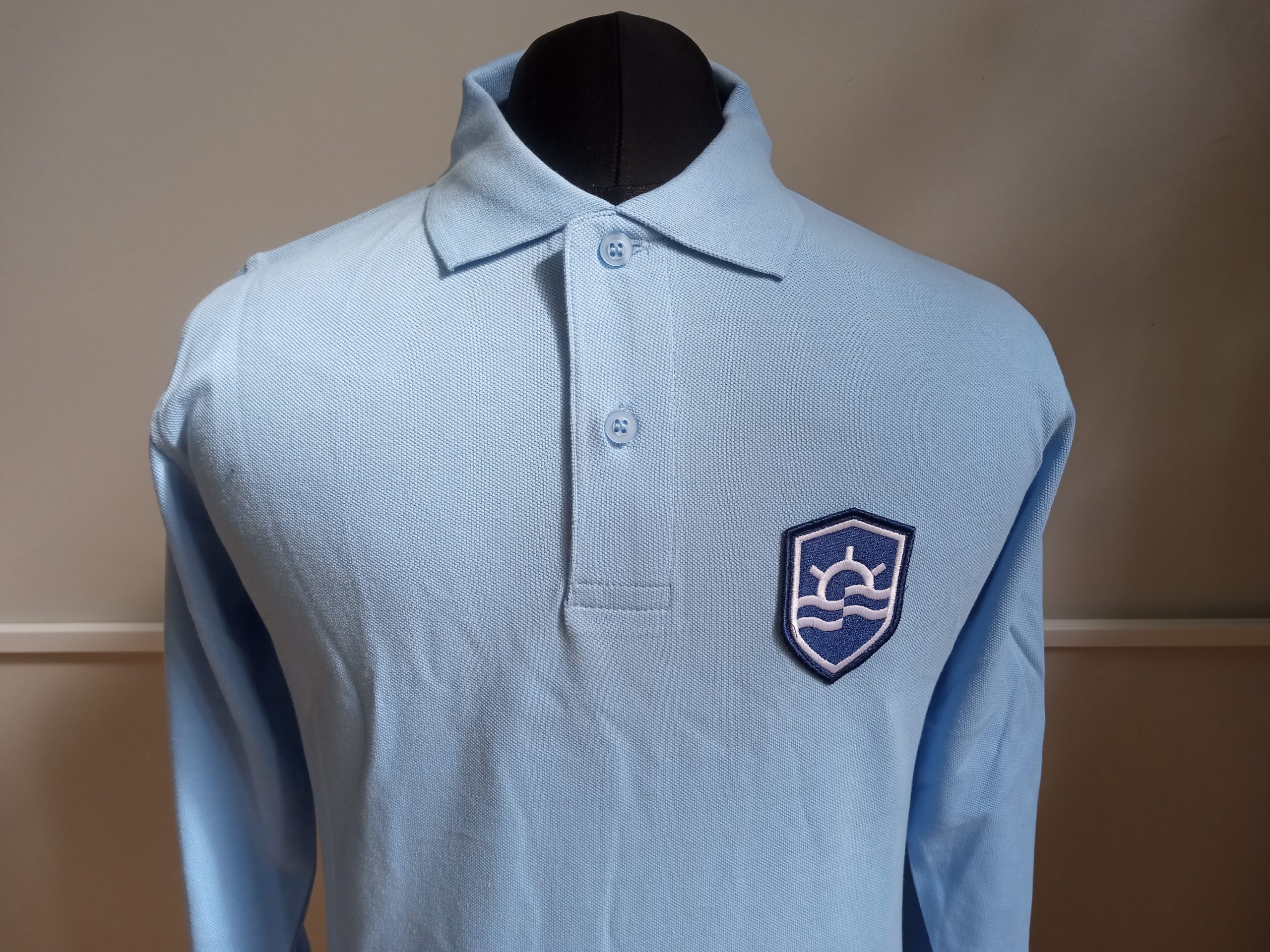 Polo niebieskie z tarczą dla uczniów Szkoły dla Chłopców (długi rękaw)